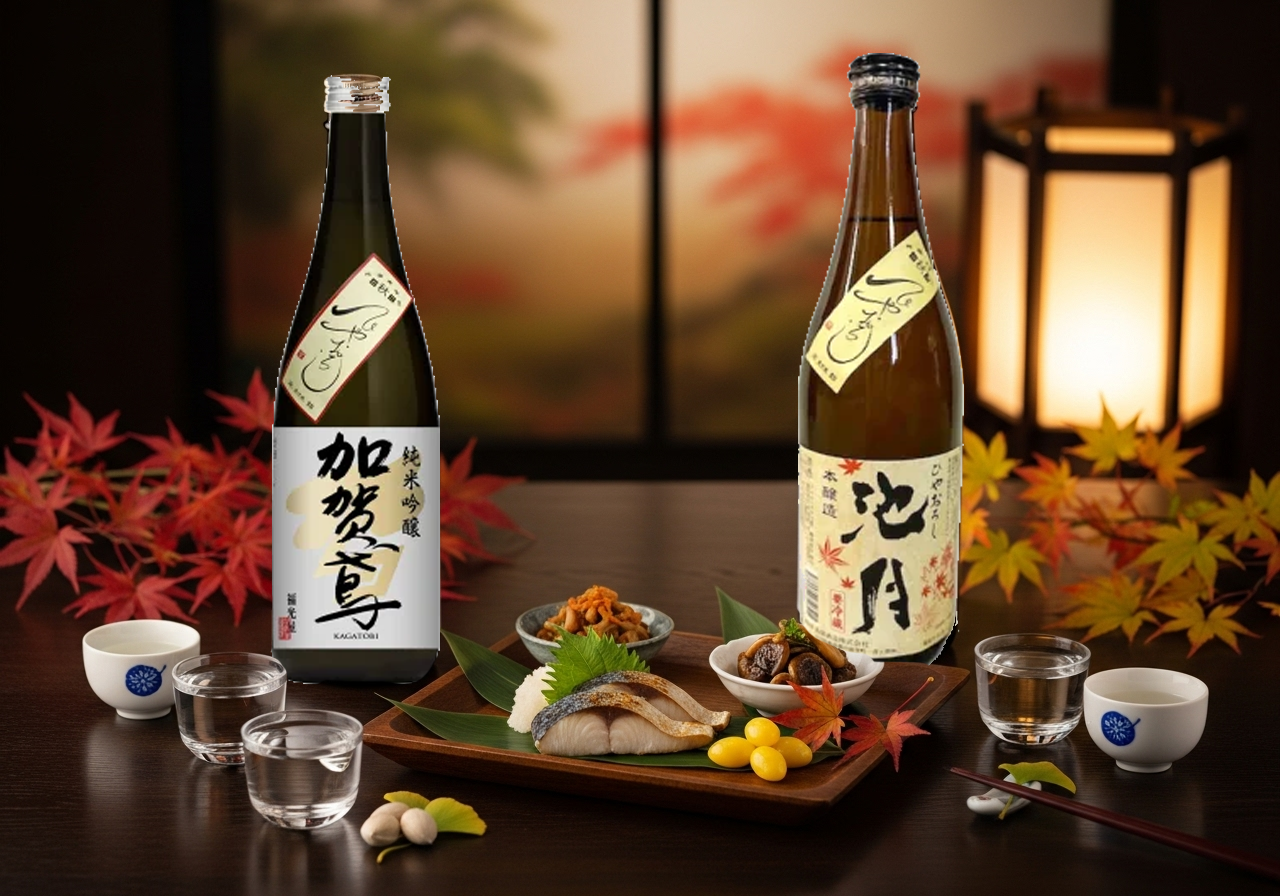 「月見酒」にはこの季節ならではの「ひやおろし」や「秋あがり」はいかがでしょう。この熟成した日本酒は、チーズとも素晴らしい相性を見せます。