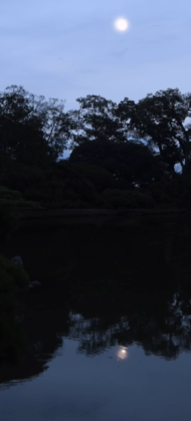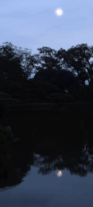 山の端からの月の出を待ち、その後は池に映る浮月を愛でます。
